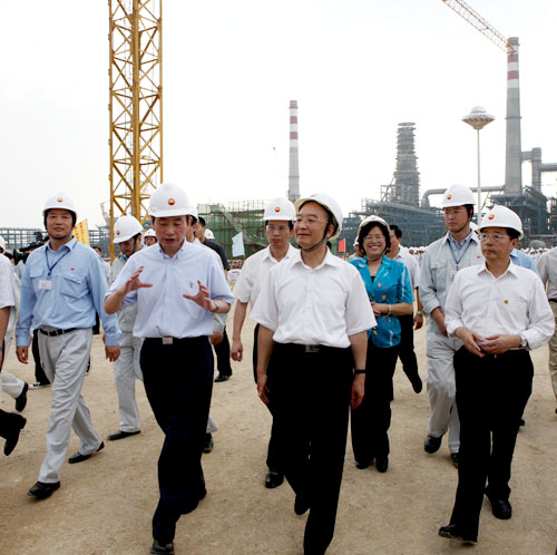 国务院总理温家宝到中油广西石化公司千万吨炼油工程施工现场视察,我公司承接了该工程1000万吨/年常减压蒸馏装置项目的施工监理。