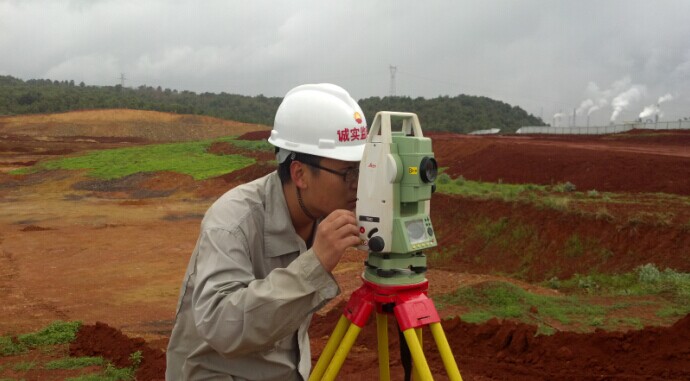 监理人员对填方区高程进行复测(辽宁诚实拍摄)